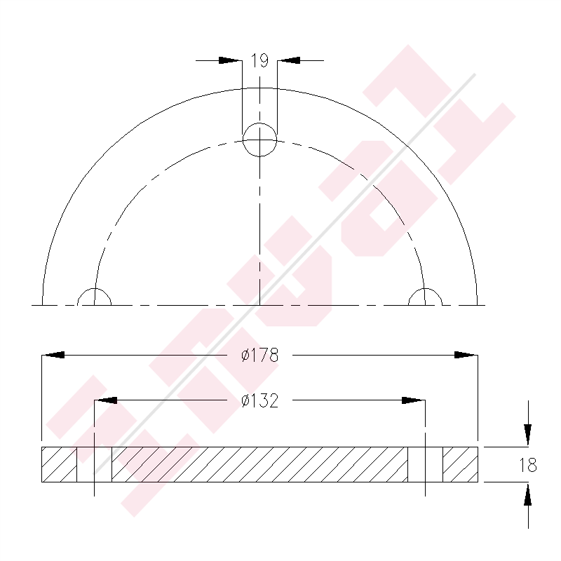 Stalen blindflens voor internationale aansluitflens voor brandbluswater, afmetingen en boring volgens DIN 86201, Fig.IN 393B.