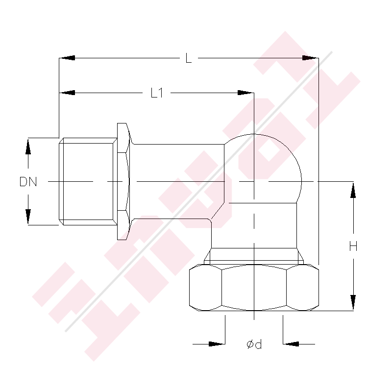PN25 messing peilglasknie, t.b.v. glas 12 mm, 1/2″ BSP buitendraad,Fig.IN 1000.