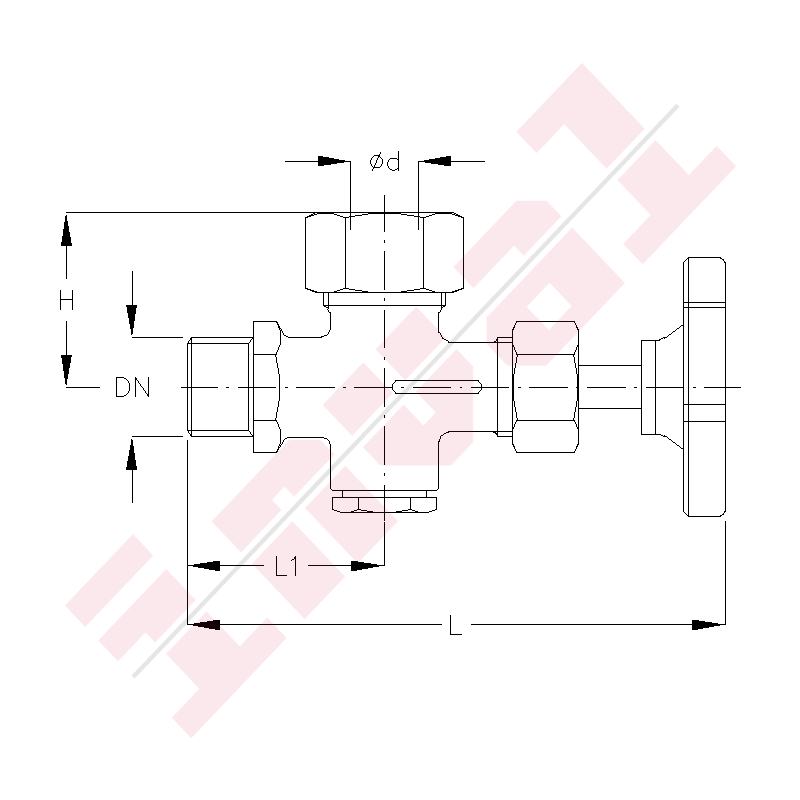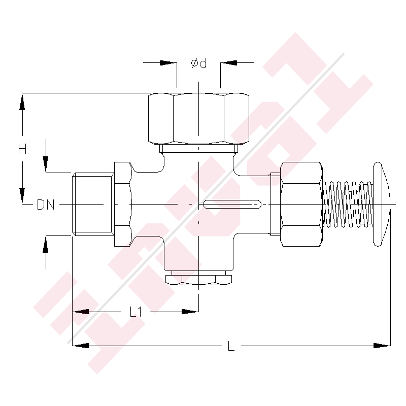 PN25 messing zelfsluitende peilglasafsluiter met drukknop en aftap plug, t.b.v. glas 12 mm, O-ring spindel afdichting, 1/2″ BSP buitendraad, Fig.IN 1010.