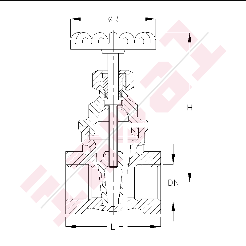 PN20 persmessing schuifafsluiter, binnenliggende spindeldraad, messing kopstuk, BSP binnendraad,