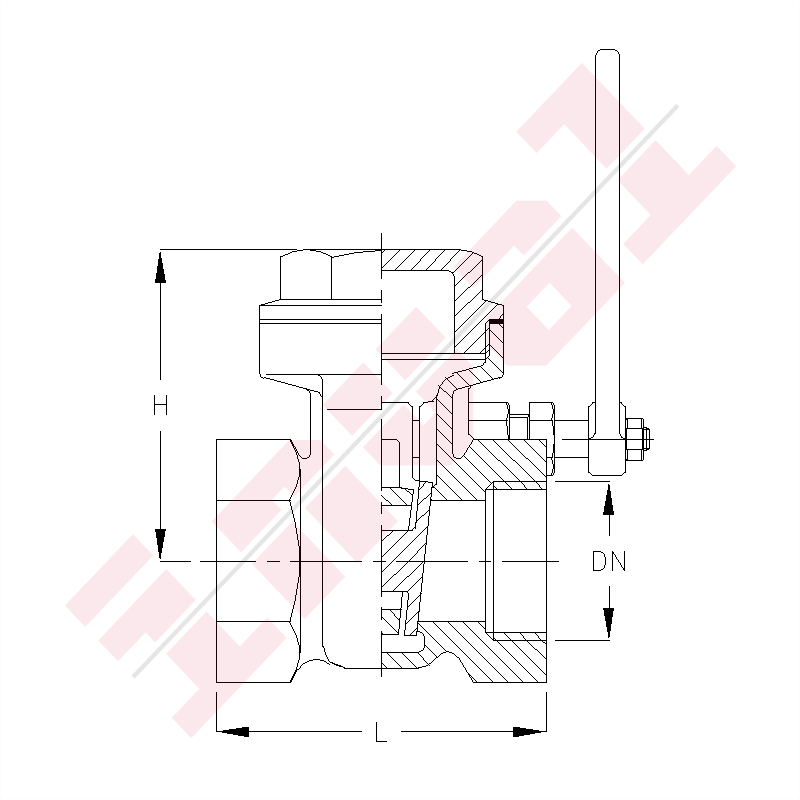 PN6 messing snelsluitende schuifafsluiter type “handy”, ingeschroefd deksel, hefboom bediend, B.S.P. binnendraad, Fig.IN 106.